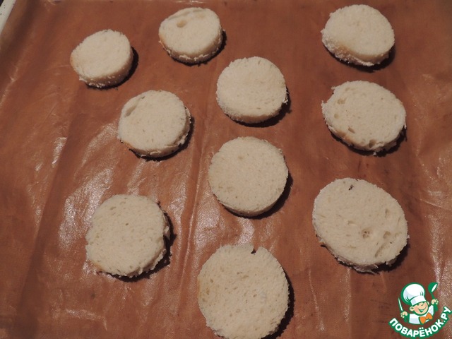 Отправляем наш хлеб в духовку под гриль или просто на сухую сковородку минут на 5, просто подсохнуть