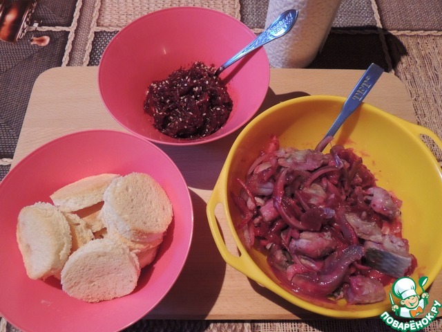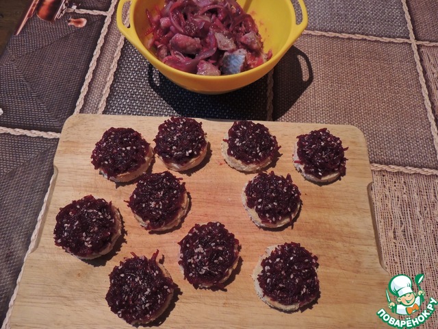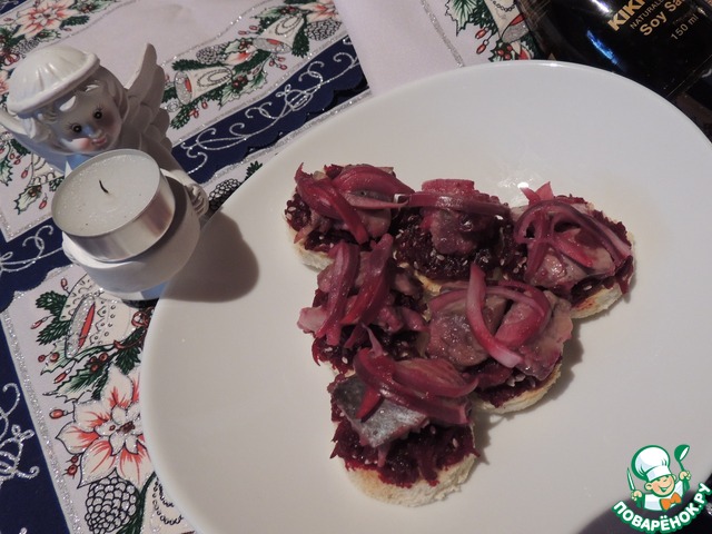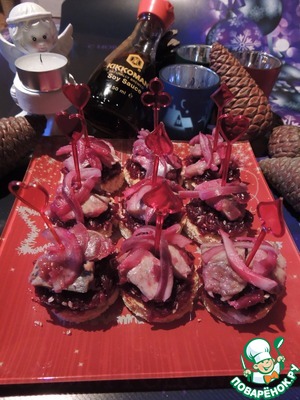Рецепт «Канапе из сельди в клюквенном соусе»: