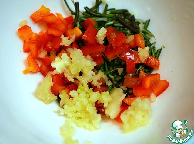 Чеснок пропустите через пресс или нарежьте.