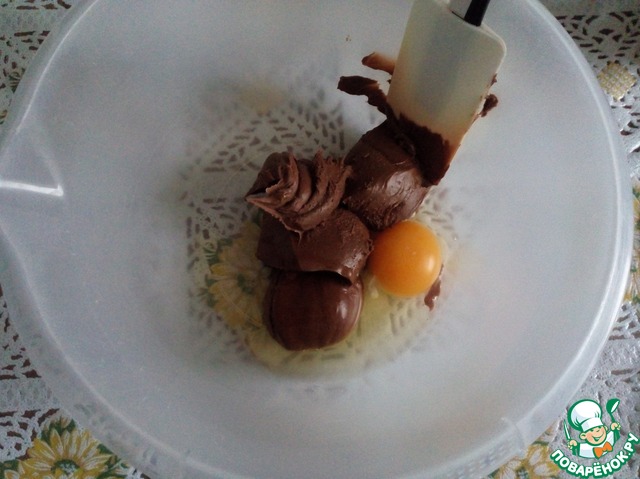 В шоколадную пасту добавляем яйцо.