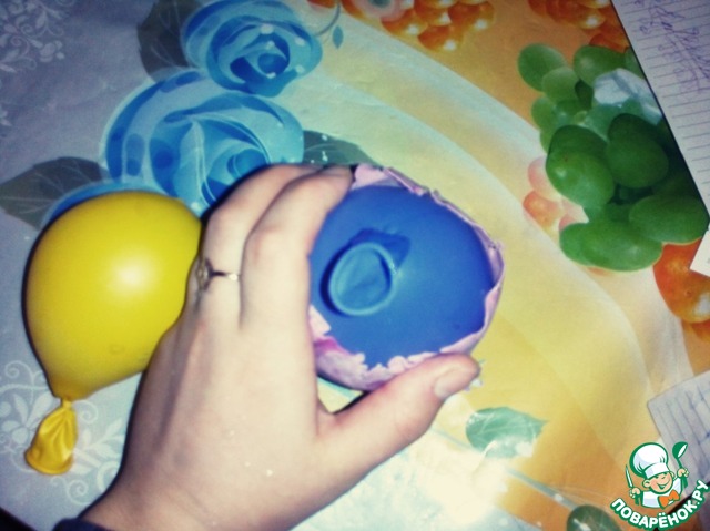 Затем (после подсыхания) берем ножницы и режем наш шарик - лопаем, извлекая его из шара (из мастики) -