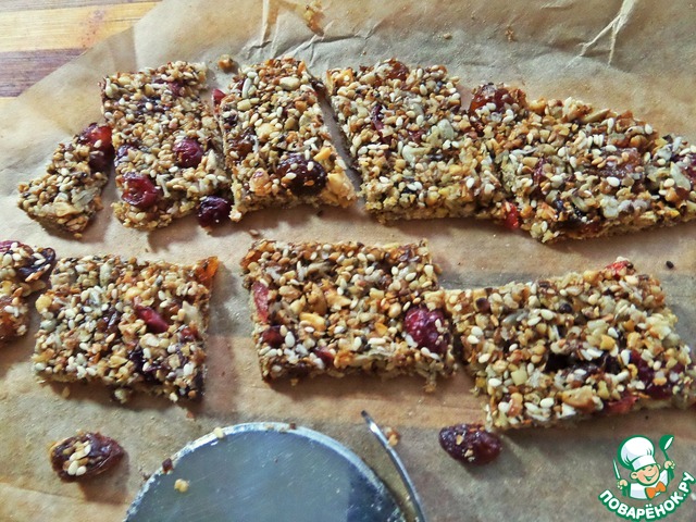 Для батончиков вынуть заготовку из формы вместе с пергаментом.