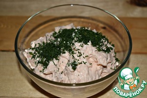 К получившейся массе добавить мелко нарезанный укроп, перемешать.