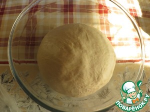 Замесить тесто, в конце замешивания постепенно (по 1 стол. ложке)ввести масло. Готовое тесто должно быть мягким, но не липнуть к рукам и посуде