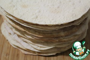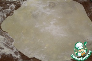 Каждый раскатываем очень тонко - стол подпылить мукой.