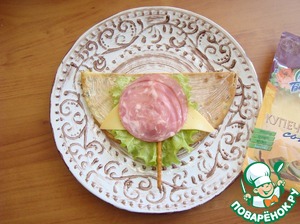 - Колбаса (можно ветчину, рыбу красную или, что вы захотите) — 2 ломт.