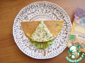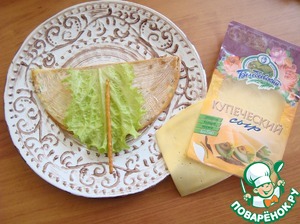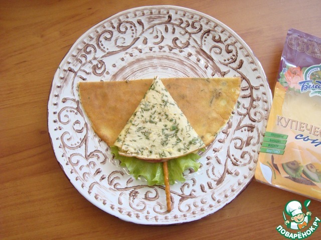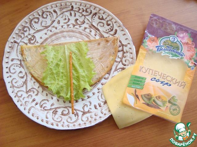 Сыр в нарезке у меня "Купеческий" Белебеевский и я кусок разрезала по диагонали. -