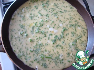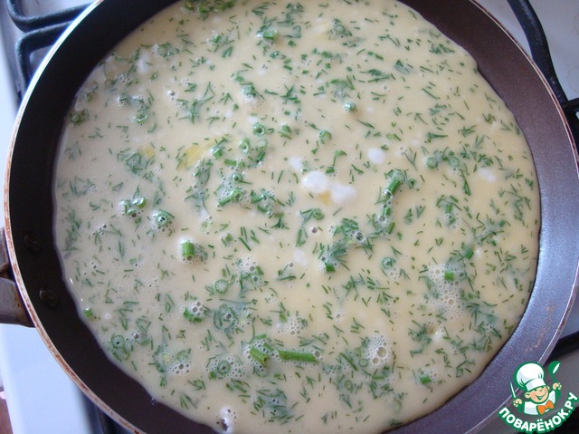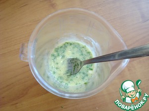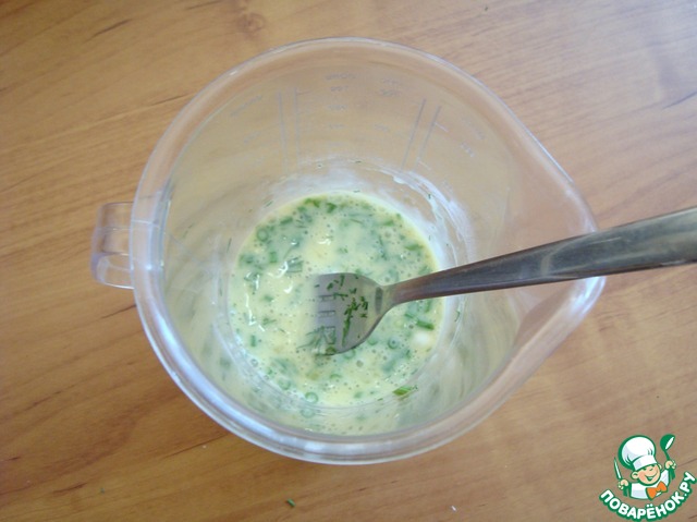 Укроп рубим мелко и добавляем к тесту, перемешиваем.