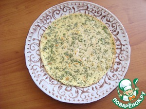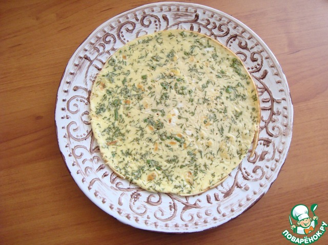 Выкладываем так, чтобы из под блина выглядывала "юбочка" от салата.