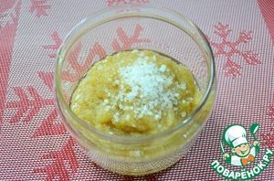 Выложить икру, всыпать 1-2 ч. л. морской соли (по вашему вкусу). Перемешать. -