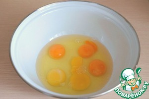 В миску добавить яйца (5 шт.) -