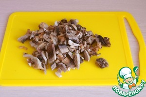 Шампиньоны порезать мелкими кубиками.