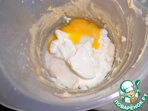Добавить яйцо, перемешать. Вести щепотку соли, просеянную муку с разрыхлителем, перемешать до однообразной массы. Тесто для пирожных готово.
