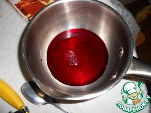 Вишню заранее разморозить, слить вишневый сок (примерно 150 мл), добавить красное вино, тростниковый сахар, перемешать и поставить на медленный огонь до загустения.