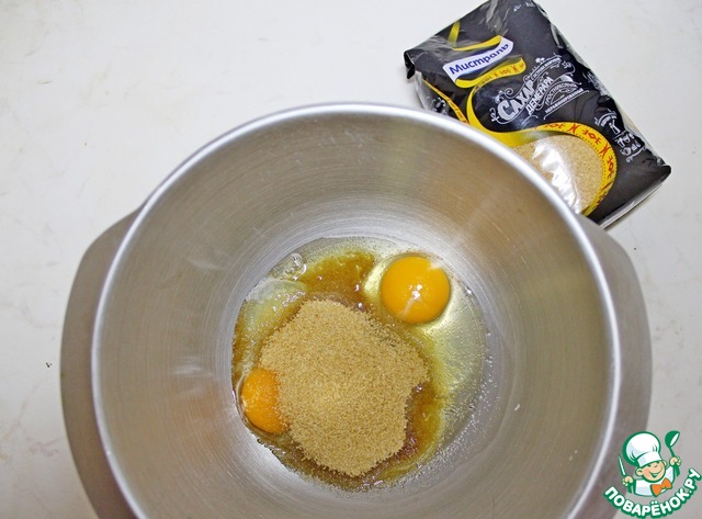 Для этого в чашу миксера выложить яйца и сахар демерара ТМ Мистраль.
