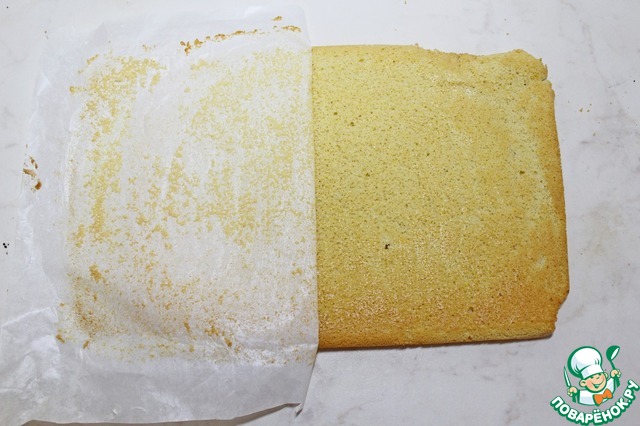 Лишние края бисквита обрезать.