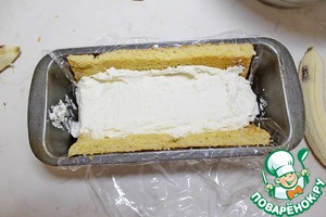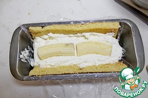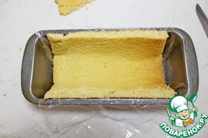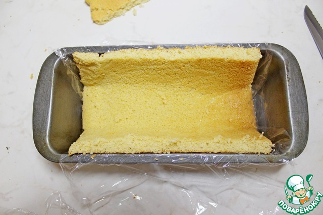 Форму для кекса выстелить пленкой. Размер формы 25 на 12.