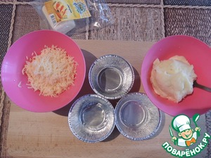 Тем временем варим картофель и делаем пюре, любым привычным способом. Сливочный сыр трём на мелкой тёрке