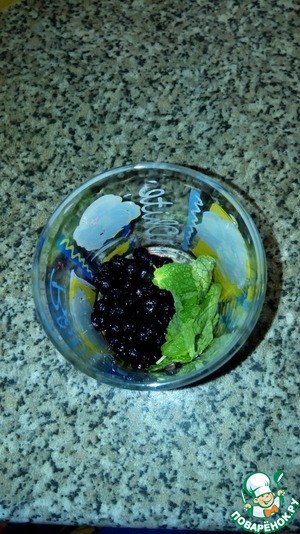 Насыпать в стакан чернику и листочки мяты, чуть подавить.