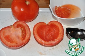Берём спелые плотные помидоры. Из расчёта 1 помидор на 2 порции.