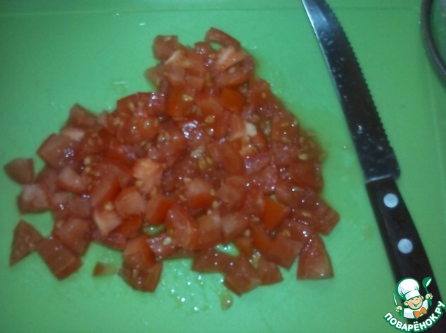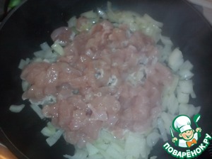 Грудку порезать на маленькие кусочки и потушить с луком, добавив соль и специи по вкусу.