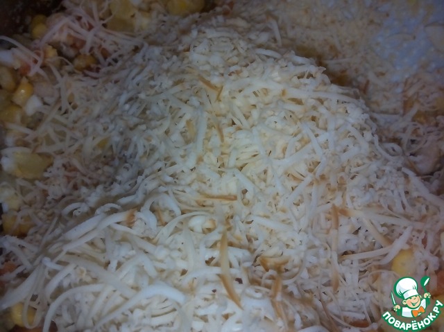 Сыр колбасный копченый натереть на мелкой терке. Перемешать салат.