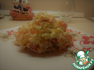 Этот салат очень полюбили в нашей семье. Один ингредиент сложно угадать, но в нем и заключается весь вкус салата. Это копченый колбасный сыр на мелкой терке. Салат подойдет на все случаи жизни.