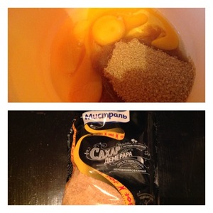 Яйца взбить с сахаром в пышную пену.