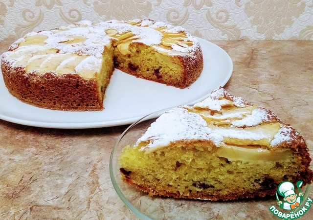 Рецепт «Яблочный пирог с творогом и цукатами»: