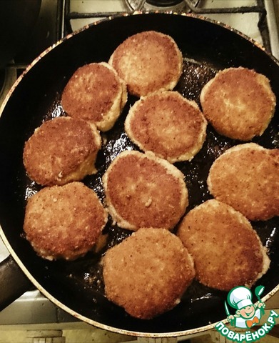 Жарьте как обычные котлеты до румяной корочки. Важно: не закрывайте котлеты крышкой, иначе они расползутся и потеряют форму!
