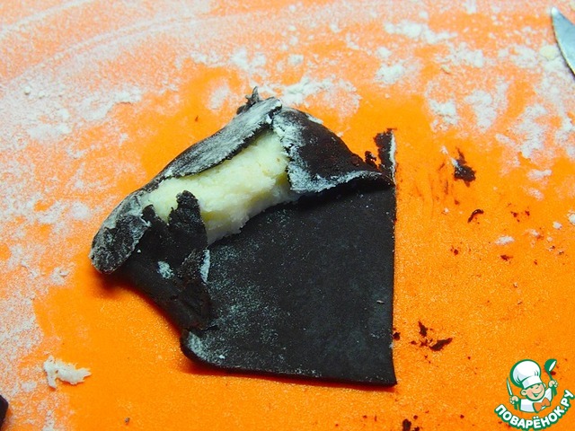 Завернуть его в пищевую пленку и положить в холодильник, пока готовим начинку.