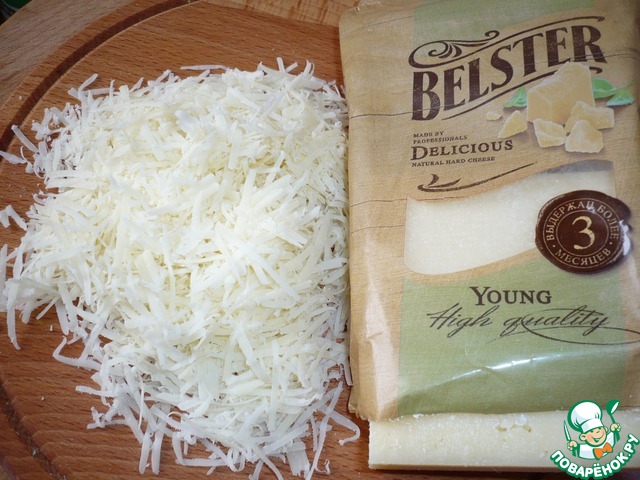 Для начинки я беру твердый фирменный сыр "Бельстер Янг" от молочного комбината Белебеевский.