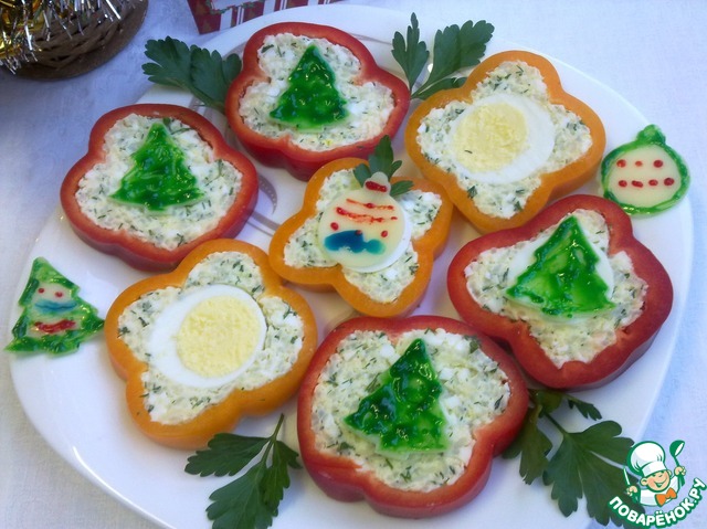 Рецепт «Сырые кольца перца, фаршированные сыром»: