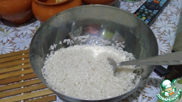 • Промыть рис, откинуть на дуршлаг, дать подсохнуть.