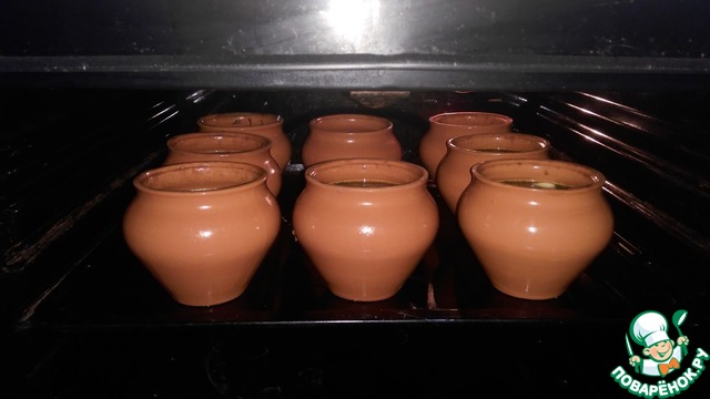 • Обязательно! В Холодную духовку поставить наши горшочки без крышек. Температуру поставить 180-200 градусов и выпекать 30-40 минут.