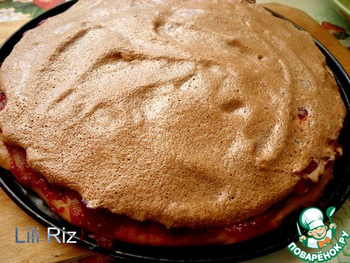 Рецепт этого пирога я нашла в кулинарной книге, которая давно хранилась у меня. Мне, любительнице разного повидла, он понравился! А взбитая белковая масса сверху, как нежным покрывалом, накрыла пирог.