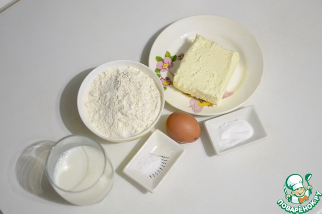 Подготовить ингредиенты для теста:сливочное масло, муку, соль, соду, молоко, яйцо.