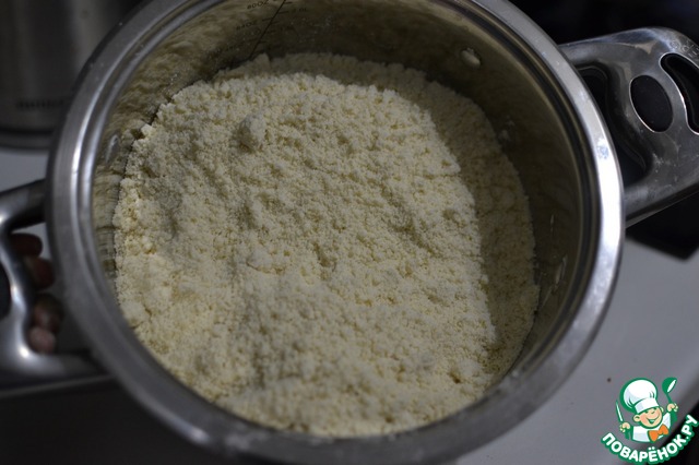 Сначала можно измельчить ножом/вилкой, потом все измельчить руками. Мука готова.