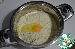 Добавляем яйцо, слегка присыпать его мукой и добавить соду, гашеную уксусом.