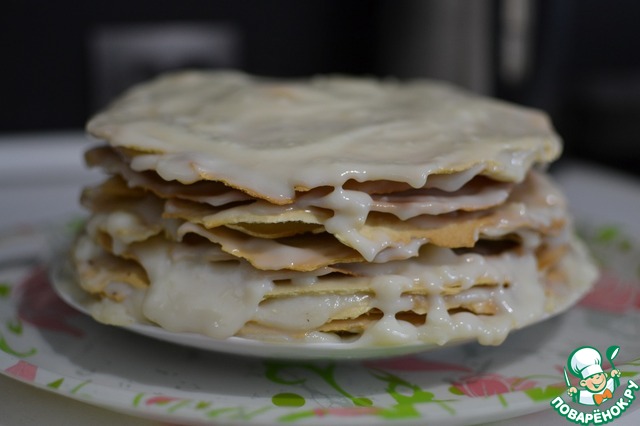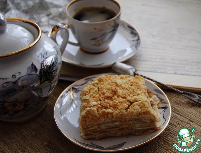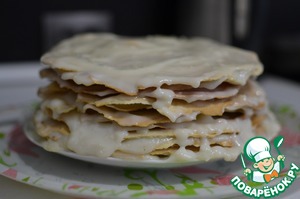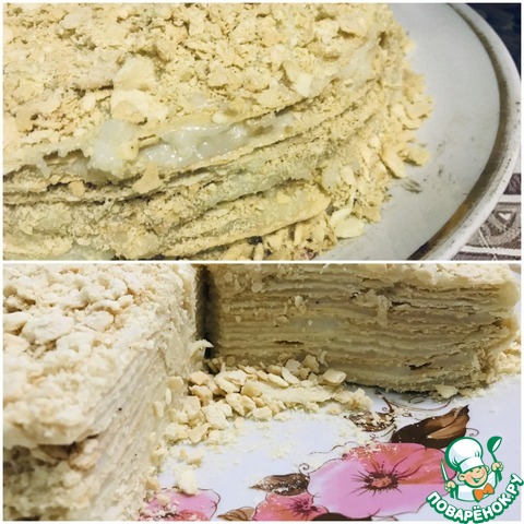 Остывшие коржи хорошо промазать заварным кремом и сложить друг на друга.