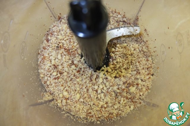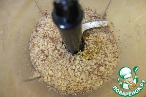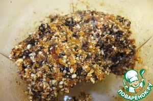 В измельченные орехи добавляем чернослив и курагу и снова измельчаем.