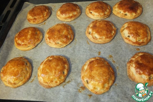 Накрываем вторым кружочком и защипываем края. Я делала это кончиком чайной ложки. Верх печенья смазываем яйцом.