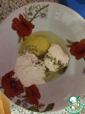Муку, яйцо и майонез перемешиваем, добавляем соль и перец по вкусу.