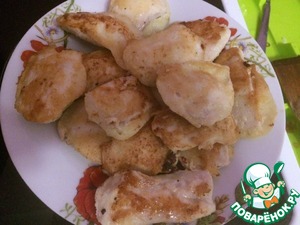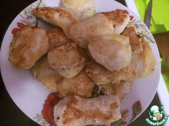 Нарезаем филе небольшими дольками, макаем в кляр.
