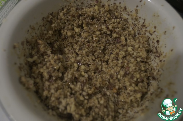 Орехи измельчить в блендере и всыпать в горячий сироп.