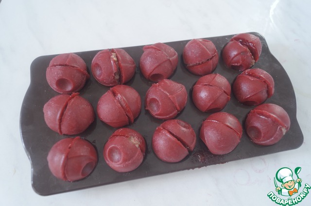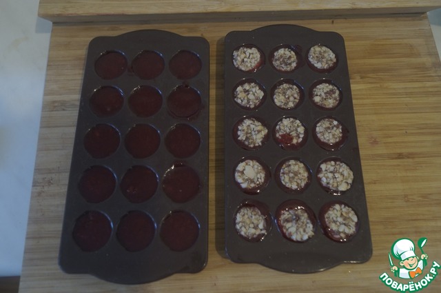 Разлить вишневое конфи в маленькие силиконовые формочки (у меня для конфет).