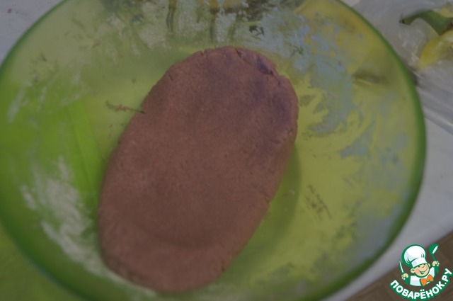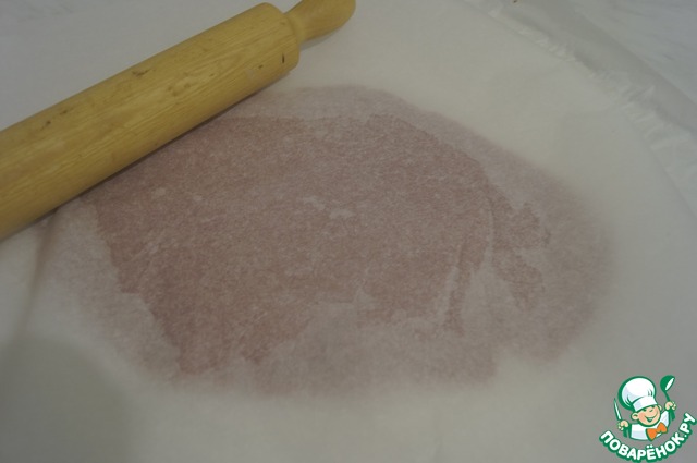 Раскатать в тонкий пласт, толщиной примерно 2-3 мм.