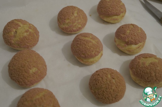 Накрыть им заварные и поставить в разогретую до 180 гр духовку.