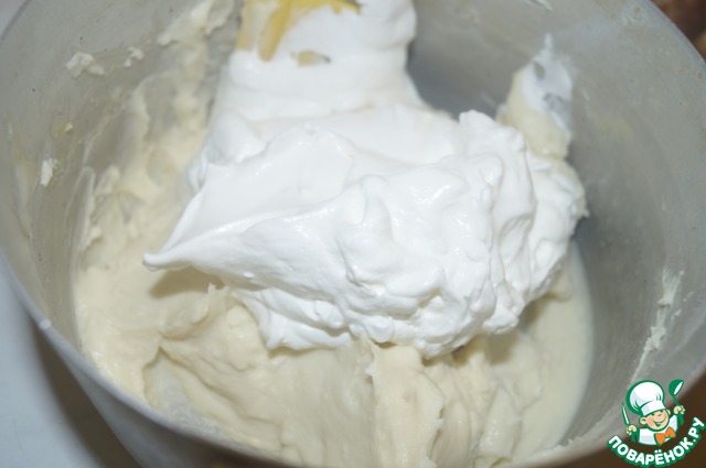 Соединить взбитые сливки с охлажденным заварным кремом до однородной массы.