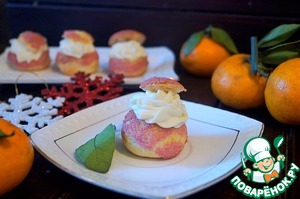 У готовых шу срезать крышечки, выдавить в низ немного сливочного крема и выложить конфи.